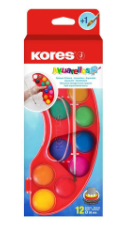 Acuarela x12 mini Kores, colores intensos, ideal para estudiantes y artistas, tamaño compacto y fácil de usar.