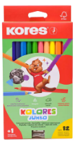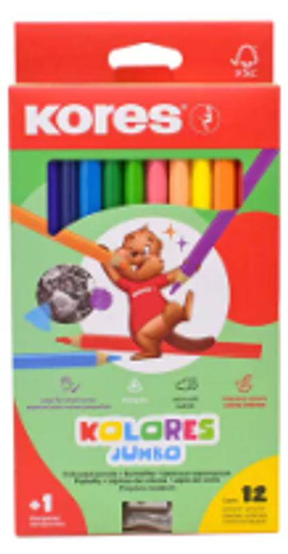 Colores Kores x12+2 jumbo, lápiz + borrador, ideal para dibujo y corrección, diseño práctico y ergonómico.