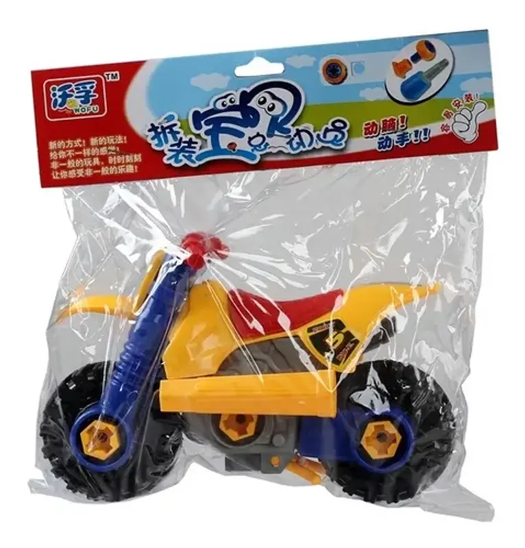 Moto plástica para niños, ideal para desarrollar habilidades motrices.