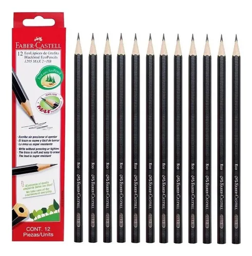 Lapiz Faber Castell de Grafito Eco 1205 Nº 2 Graduacion HB. Producido con madera 100% reforestada. Mina muy resistente al sacar punta.