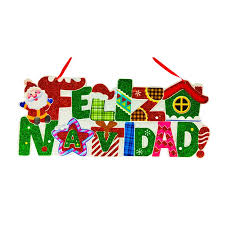 Letrero decorativo con mensaje de "Feliz Navidad y Año", fácil de colgar en puertas o paredes.