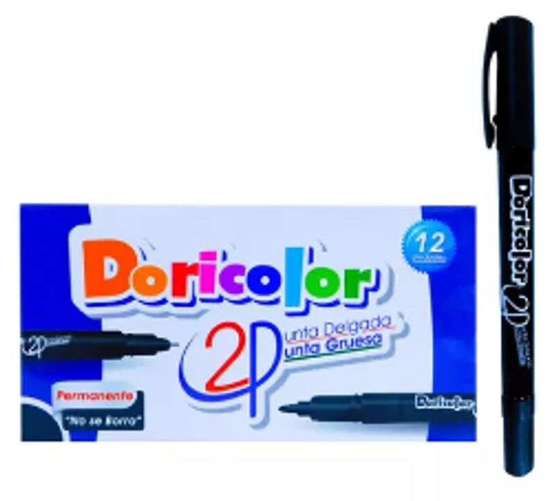 Marcador de doble punta negro, ideal para trazos finos y gruesos. Versátil y duradero.