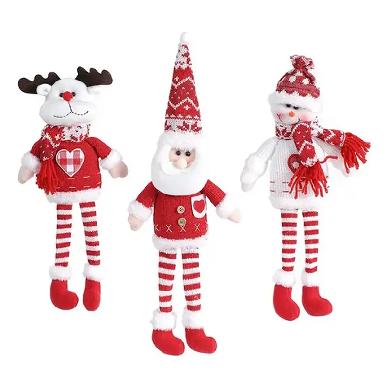 Muñeco navideño mediano en tela, ideal para adornar mesas, repisas o entradas.