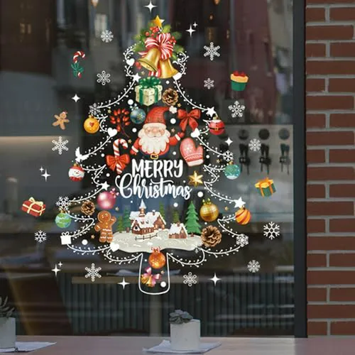 Sticker navideño para vidrio o superficies lisas con motivos festivos.