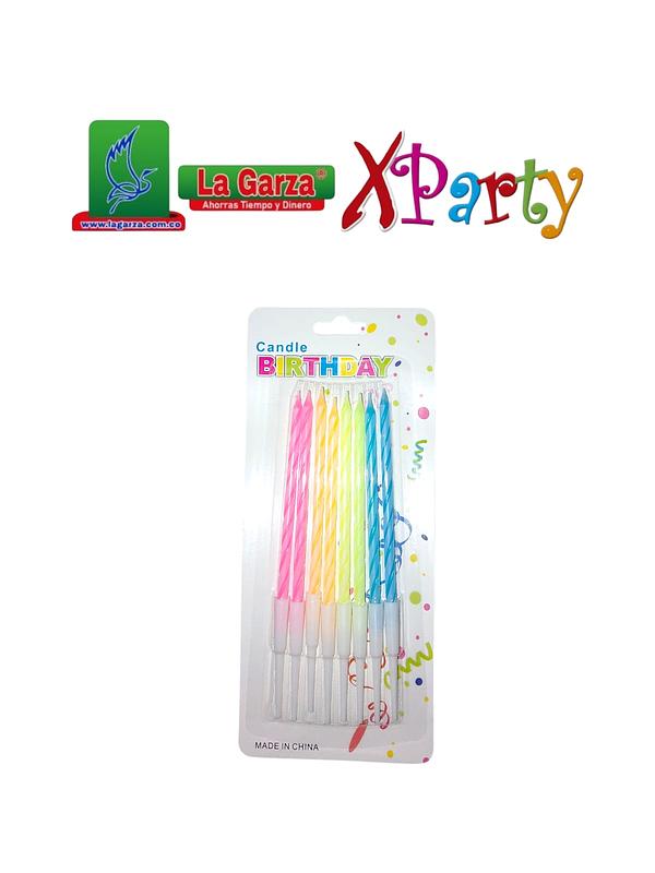 Pack de 6 velas con base para decorar tortas de cumpleaños